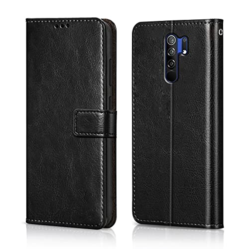 Shock Proof Flip Cover Back Case for Xiaomi Redmi 9 Prime | Magnetic Wallet Leather Case with Stand